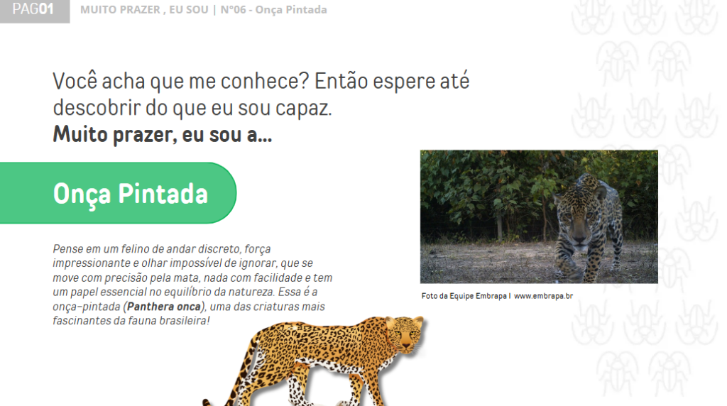 Material educativo sobre a onça-pintada: o maior felino selvagem das Américas que nada muito bem e tem manchas únicas!